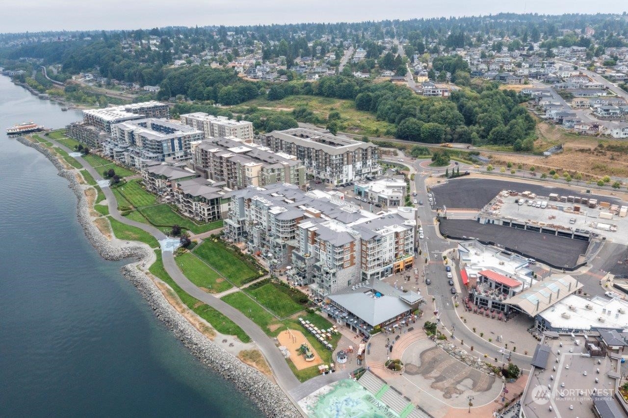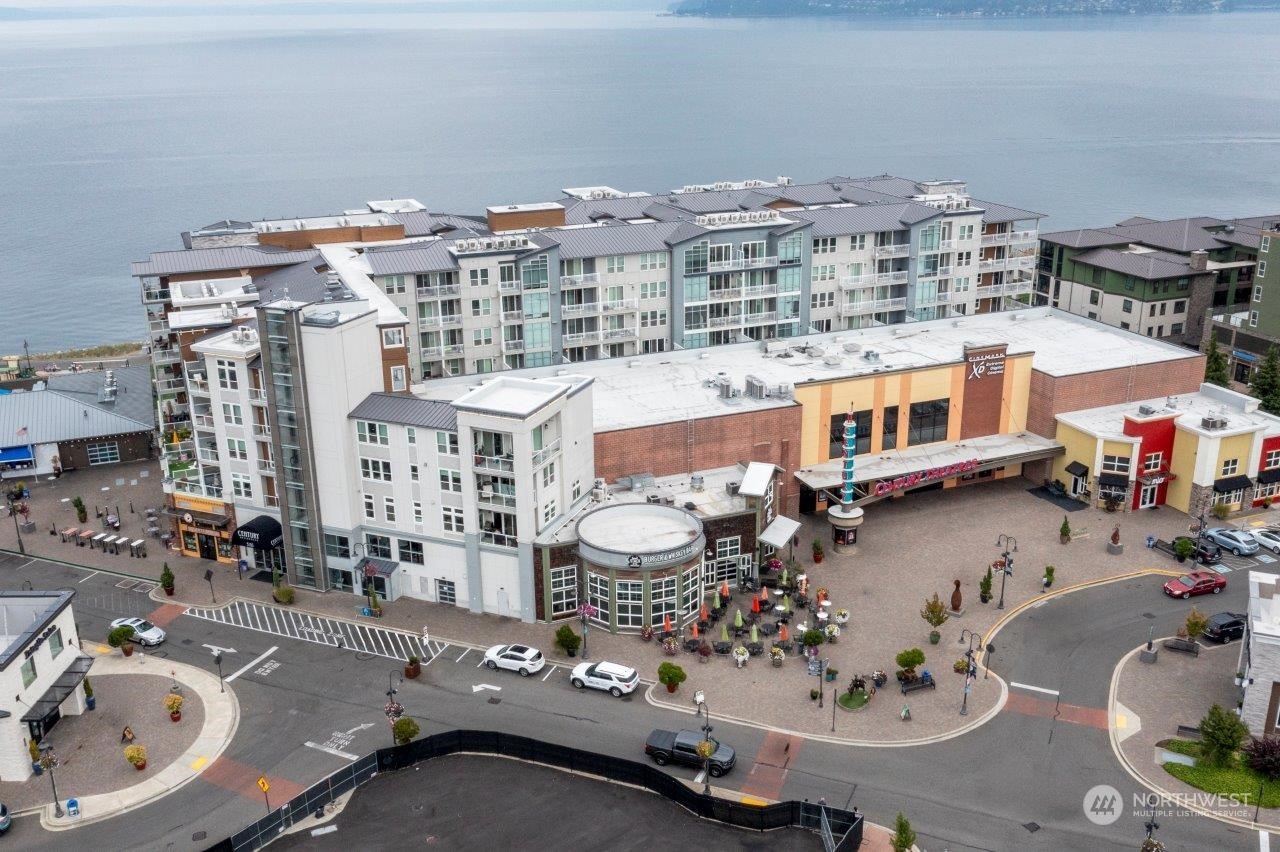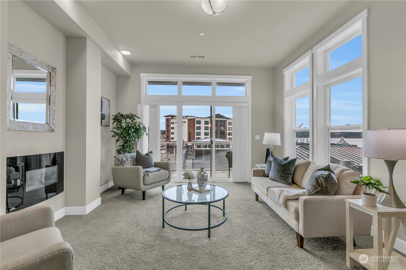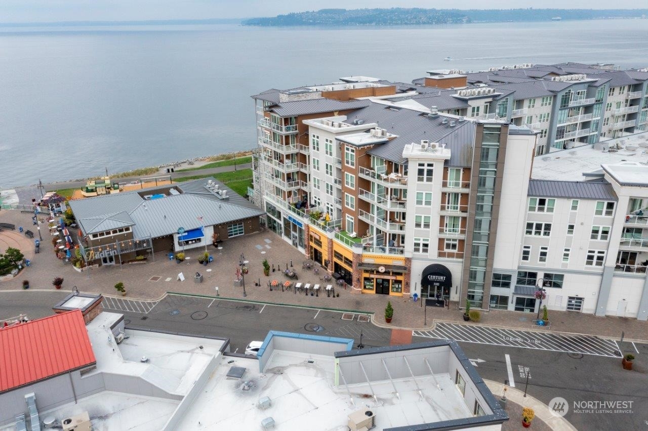 Welcome home to this beautiful, 3 bed/2 bath Point Ruston condo! Featuring high ceilings, a gas fireplace, hardwood floors, quartz counter tops and stainless steel appliances (all stay)! The primary suite has a large, walk-in closet, it's own private bath, and deck access! Enjoy the view from your deck overlooking Commencement Bay & Point Ruston's Grand Plaza.